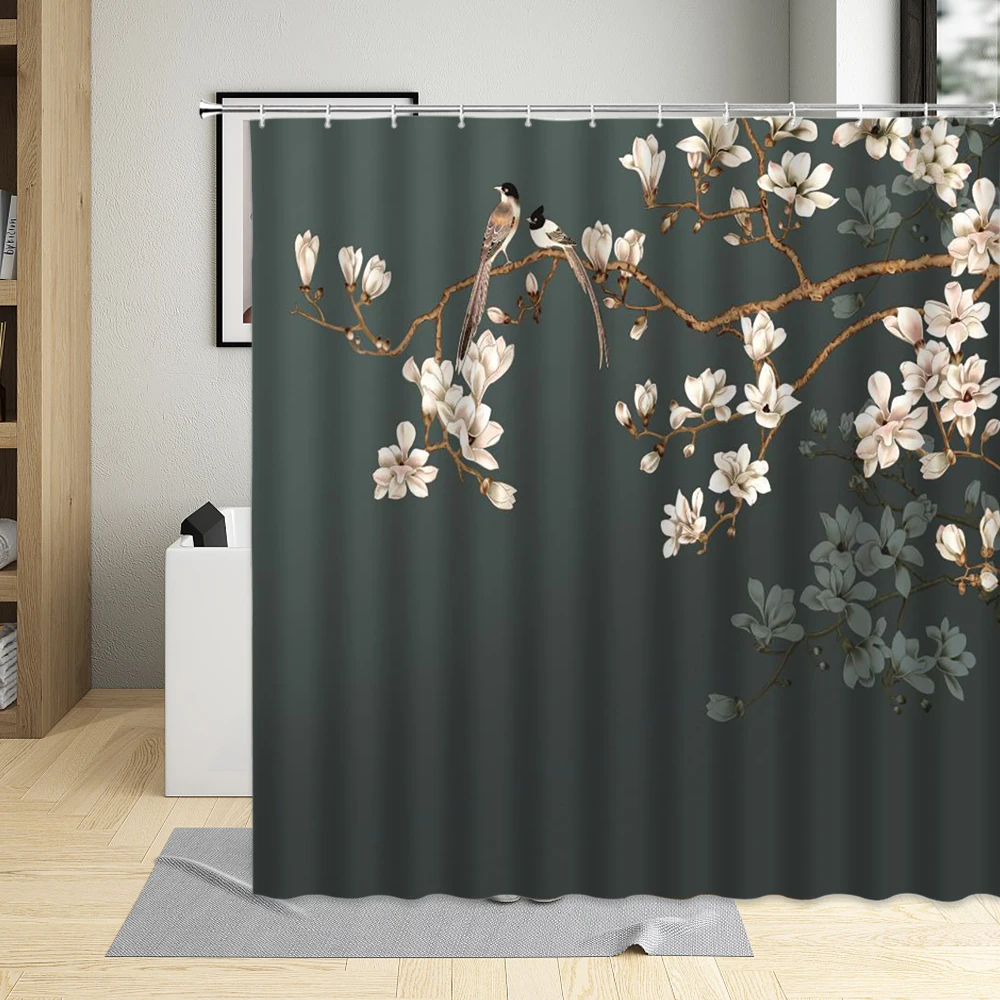 Floral Plant Simple Elegant Bathroom Decor Screen Flowers Couple Bird Shower Curtain Waterproof Polyester Curtains With 12 Hooks Aliexpress Home Garden Leaves Bamboo Green White Orchid Flowerses Shower Curtain Bathroom Decor